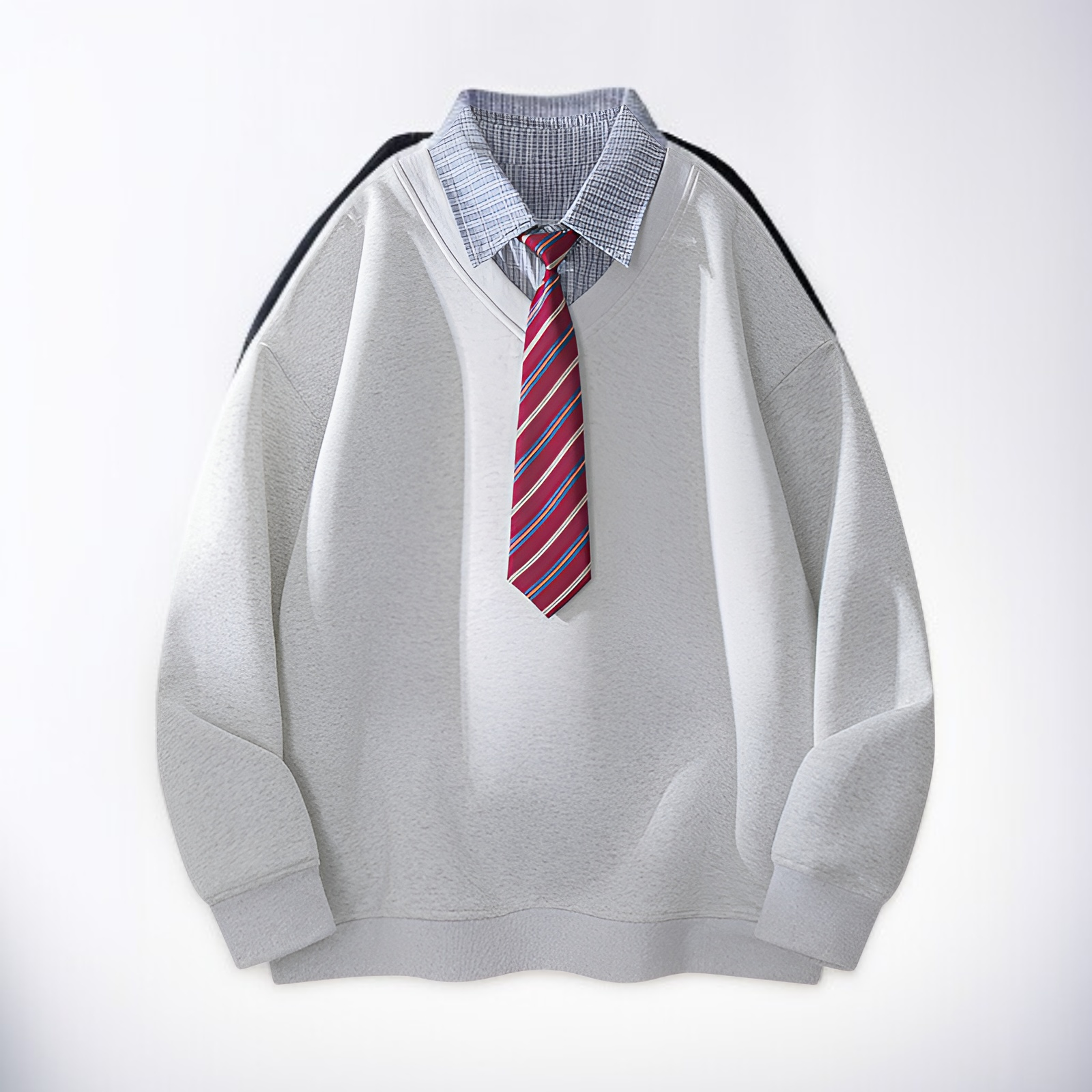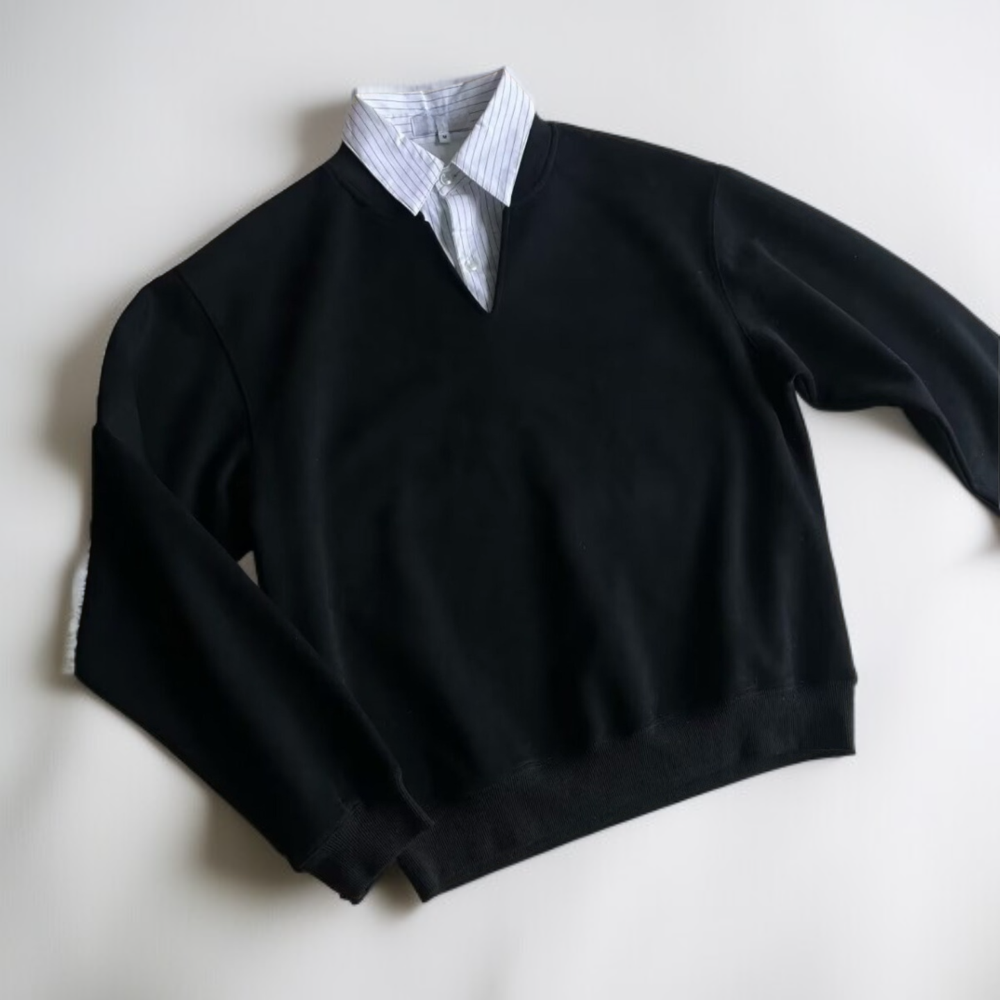 黒のフェイクツーピースシャツカラースウェットシャツ(メンズ)