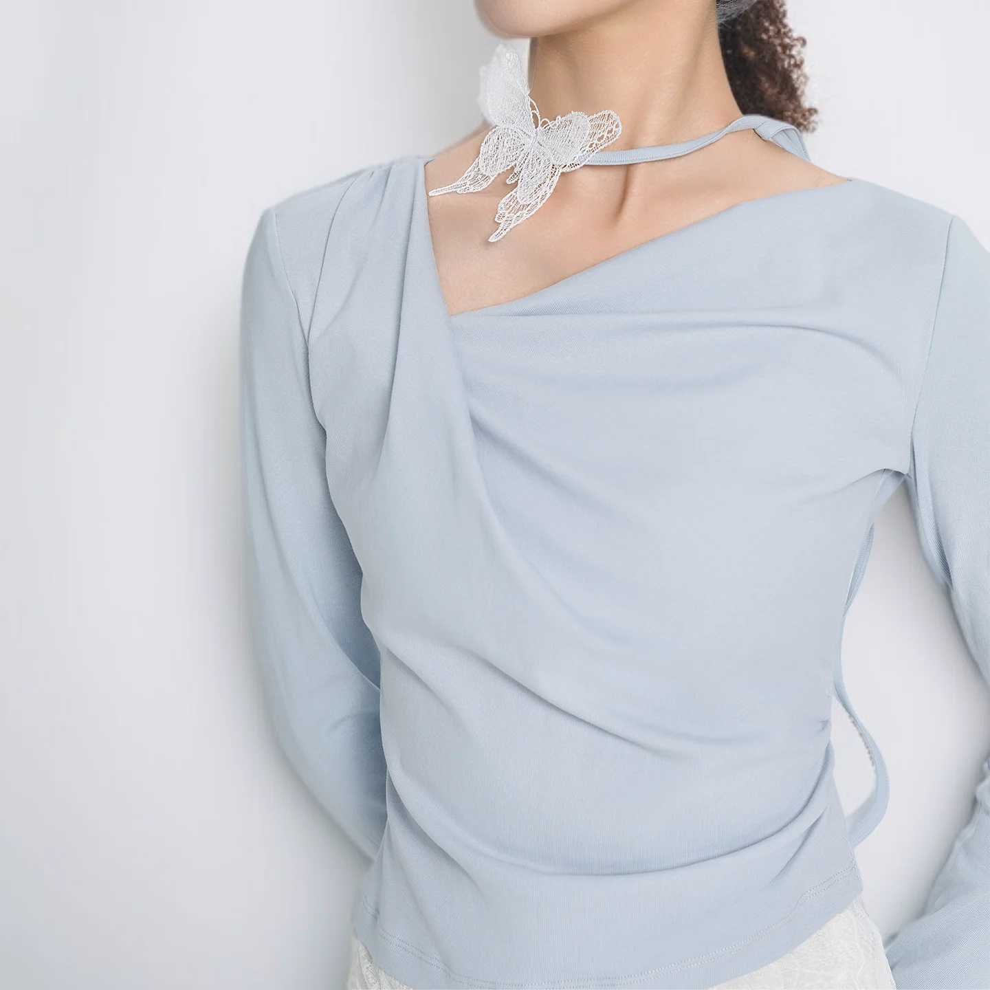 女性用レースTシャツ(七分袖)、女性用フリルネックラインのドレス。