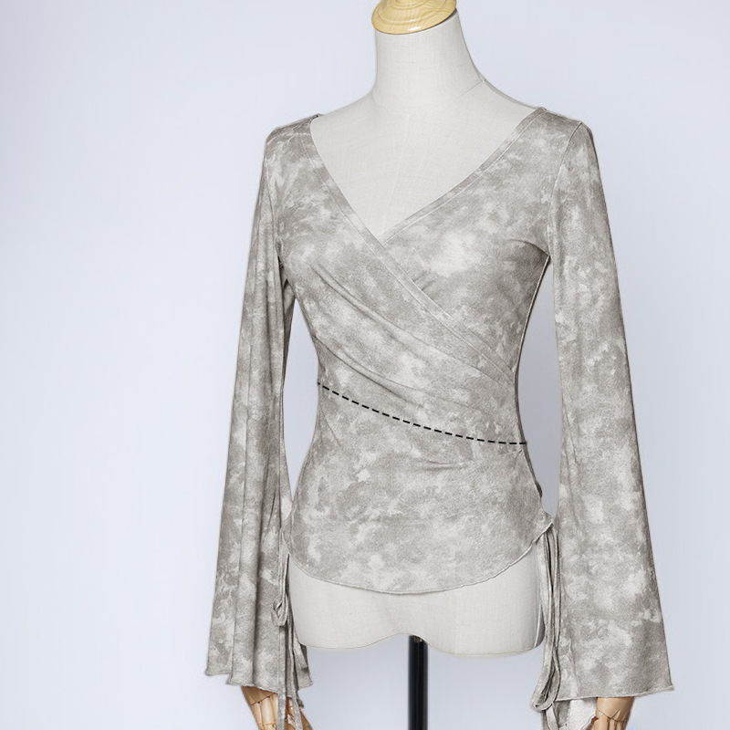 レトロなリボンデザインが特徴的なタイダイ柄の長袖トップス